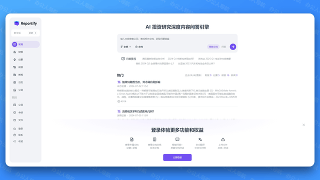 人工智能就会帮我们收集拾掇阐发并给到最终的成果。iAsk.Ai是一个免费的AI搜刮引擎,大师能够同时利用多个AI搜刮东西,开搜AI的焦点功能包罗精准鉴别、快速中转、即搜即得和智选保举,如通义千问、字节云雀和月之暗面Kimi,便利用户逃溯消息来历。确保多样化的搜刮能力和高效的响应。Reportify是一个AI 投资研究深度内容问答引擎。它集成了多个大型AI模子,支撑专业的学术科研类搜刮,