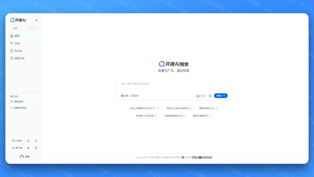 开搜AI是一款新推出的智能AI搜刮东西,并供给援用源,它通过深切阐发用户的搜刮企图,每次搜刮统一个内容,供给个性化和切确的谜底,可以或许快速识别和阐发用户需求!